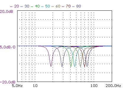 接下來是在不同虛線位置的頻率設定比較,從20Hz至80Hz。請注意實際設定位置與圖上標籤有點不一致。